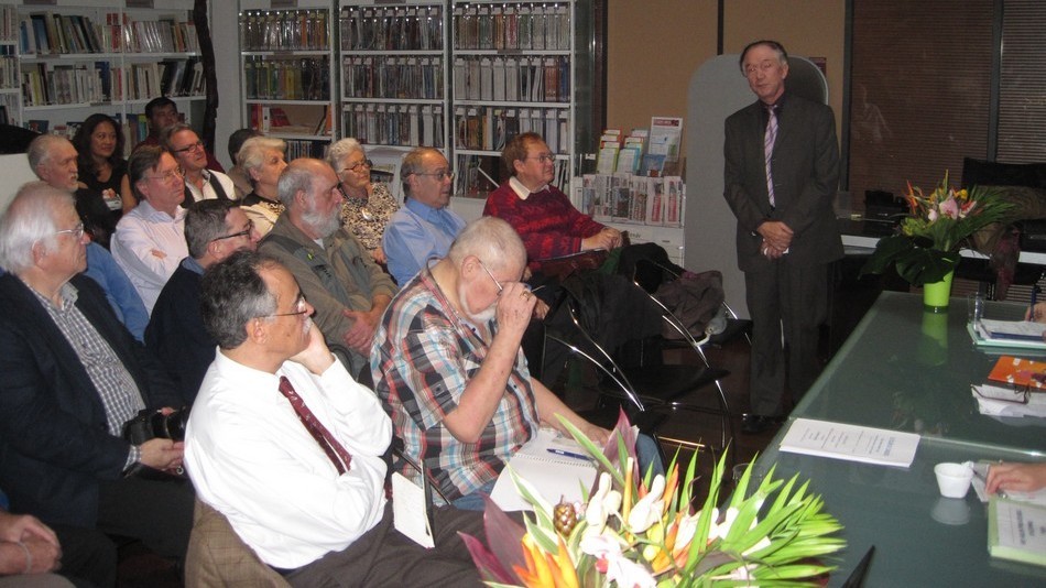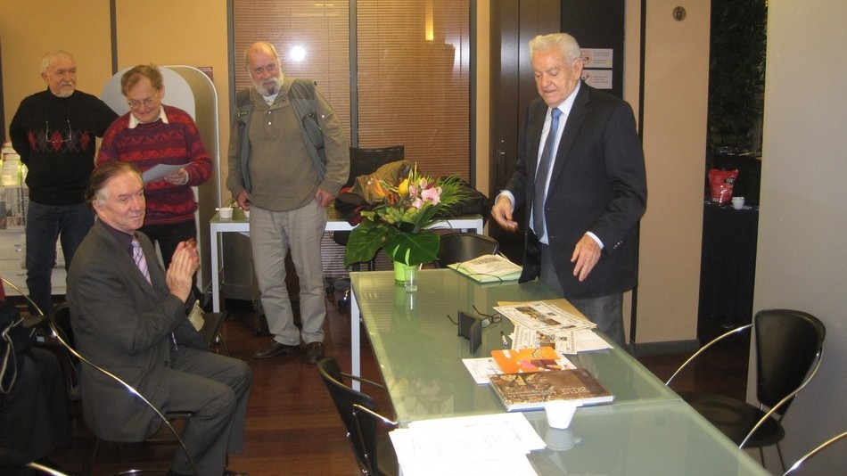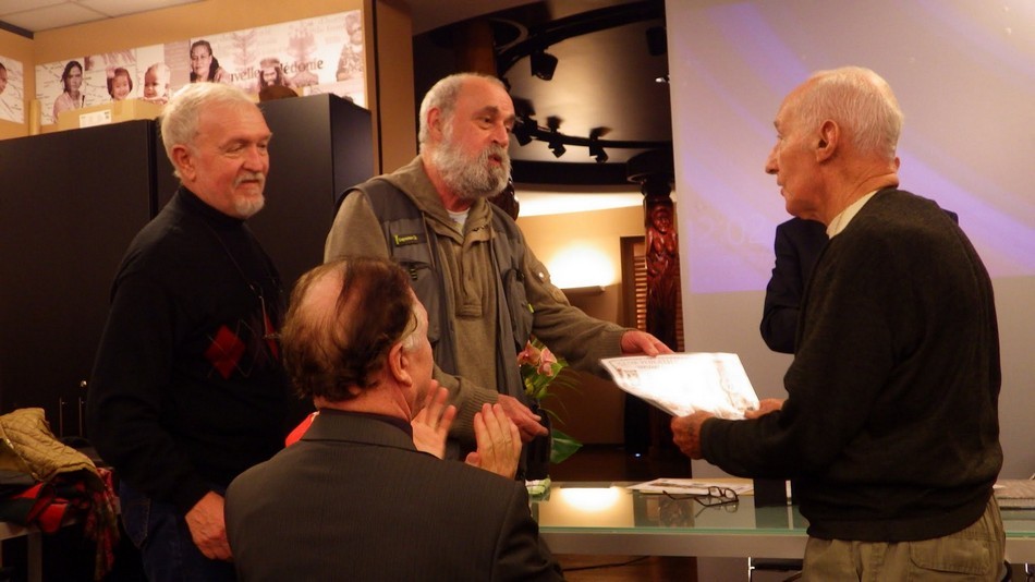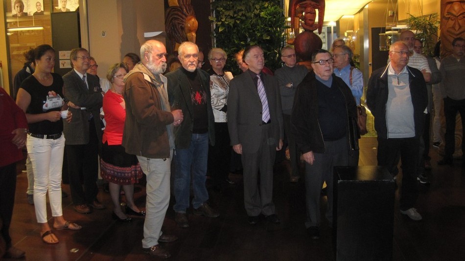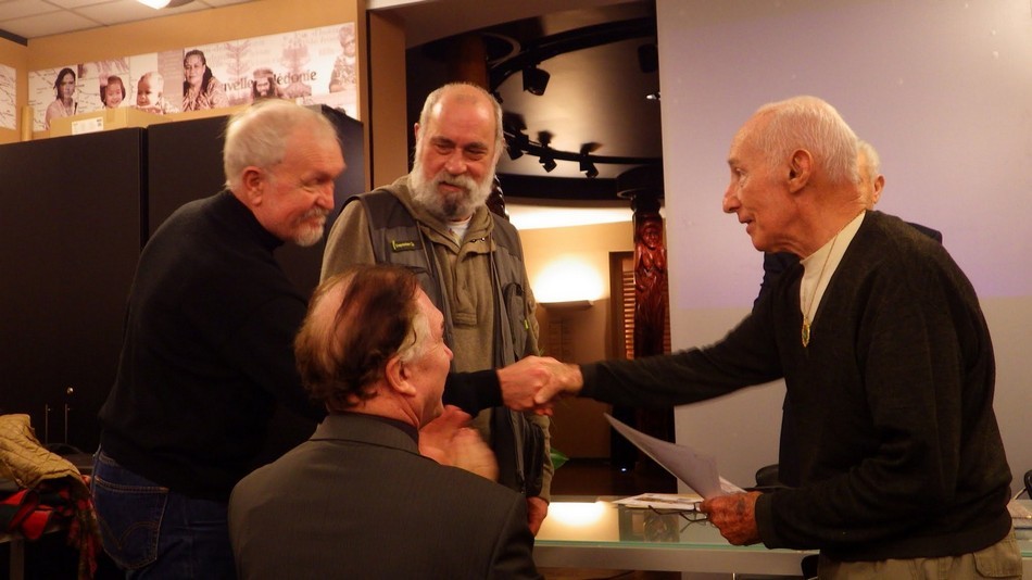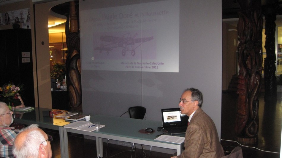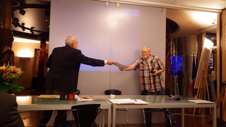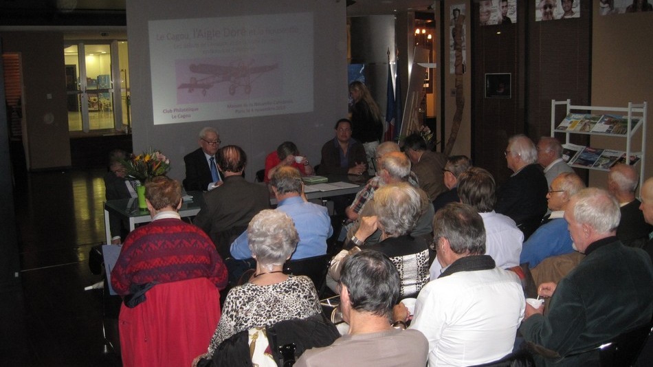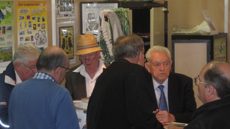 - Vous reconnaitrez également sur les photos 3 dessinateurs de timbres (Jean-Jacques Mahuteau, Jean-Marie Veret-Lemarinier et Jean-Richard Liziak), des collectionneurs médaillés (Robert G. Wightman et Alain Millet), nos représentants métropolitain (Michel Queva) et polynésien (Christian Beslu) et bien entendu de nombreux Cagousiens (on a failli manquer de chaises).