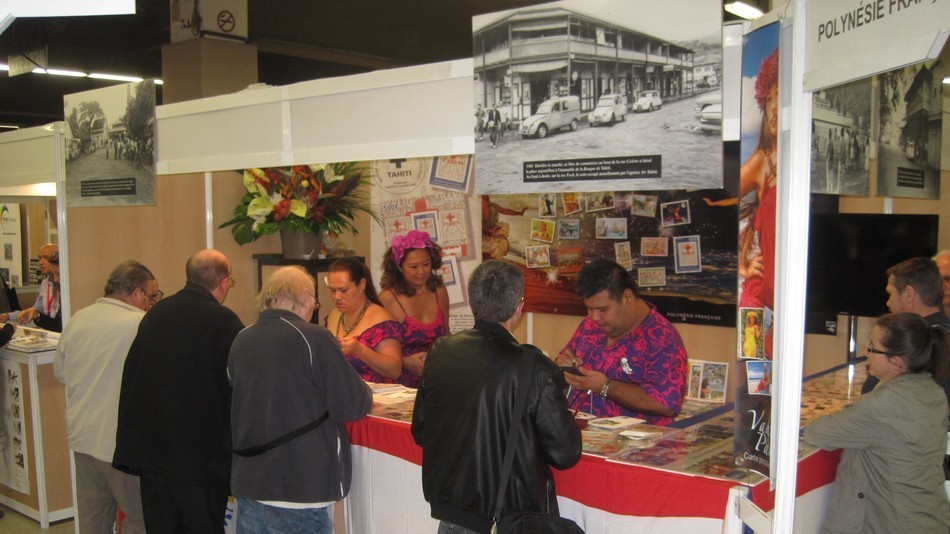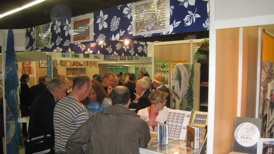 Belle affluence sur les 3 stands du Pacifique (Nouvelle-Calédonie, Polynésie Française et Wallis et Futuna) durant ce salon 2015. Le jeudi à l'ouverture du salon, il fallait être patient pour pouvoir acheter ses timbres préférés. Toutes les équipes avaient le sourire et des tenues très chatoyantes.